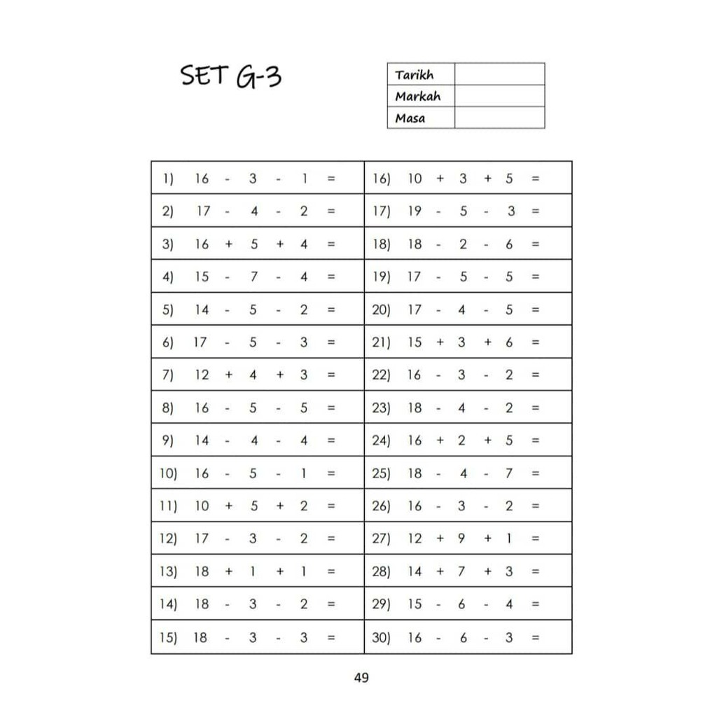 Latihan sifir 1 hingga 10.